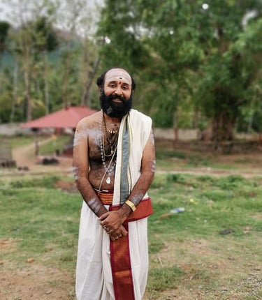 A management consultant by profession, Shri Aravind is renowned as a scholar, orator, prolific author, and passionate devotee of Lord Ayyappa. His spiritual journey began in childhood, with annual pilgrimages to Sabarimala since the age of four. His life exemplifies the fusion of rigorous scholarship, spiritual practice, and community leadership.