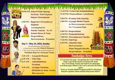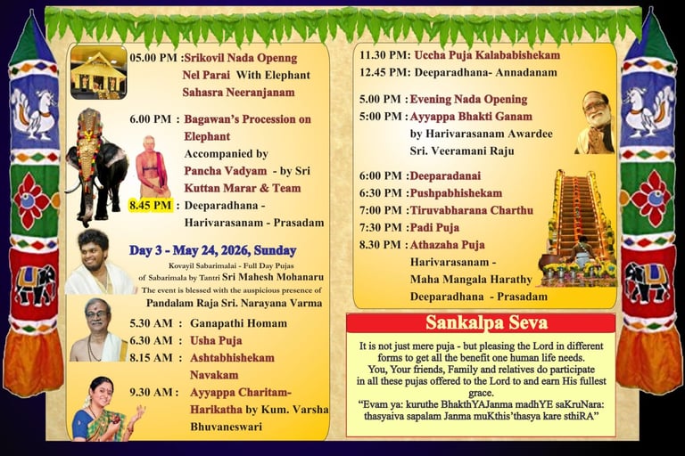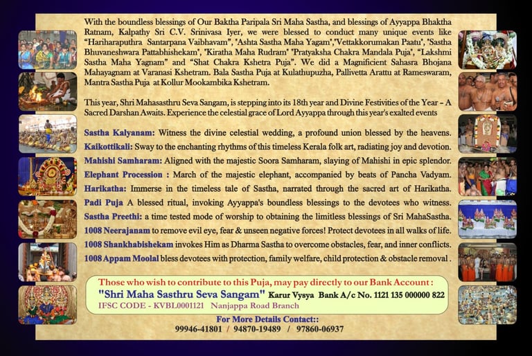 *(All these are indicative only) Any small contribution to the above event would make it very successful and obtain the blessing of Lord Dharma Sastha.